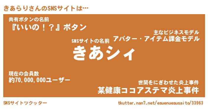 | ヘコむあだ名 | 『きあもー』『レバニラ』『きあっぺ』 |