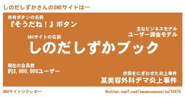 | 男性向けラノベタイトル風あだ名 | 『シノダシズカアートオンライン』 |