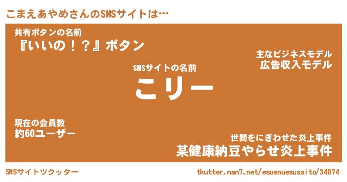 | ヘコむあだ名 | 『こまもー』『レバニラ』『こまっぺ』 |
