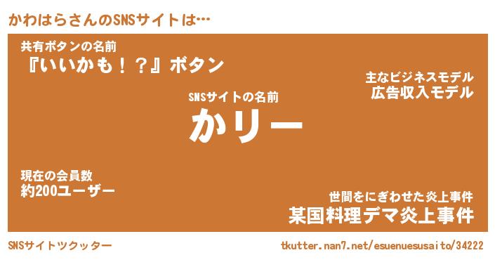 | 意味不明あだ名 | 『ペロリンかわはら』『永久保存かわはら』 |