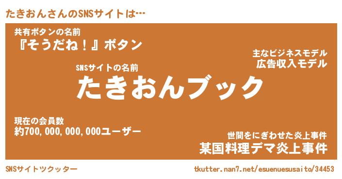 | 意味不明あだ名 | 『ペロリンたきおん』『永久保存たきおん』 |