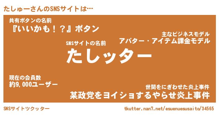 | 肩書あだ名 | 『たしゅー店長』『たしゅー国家主席』 |