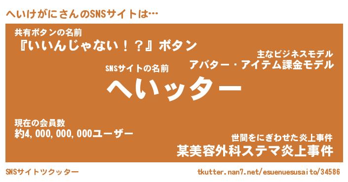 | 胡散臭い通販商品みたいなあだ名 | 『億万長者になれるブレスレット…その名も「へいけがに」』 |