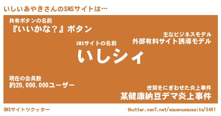 | 2回繰り返すあだ名 | 『いしいし』『いいしし』『いそいそ』 |