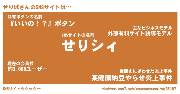 | ファンタジー風あだ名 | 『セリフェル』『エターナルセリパー』 |