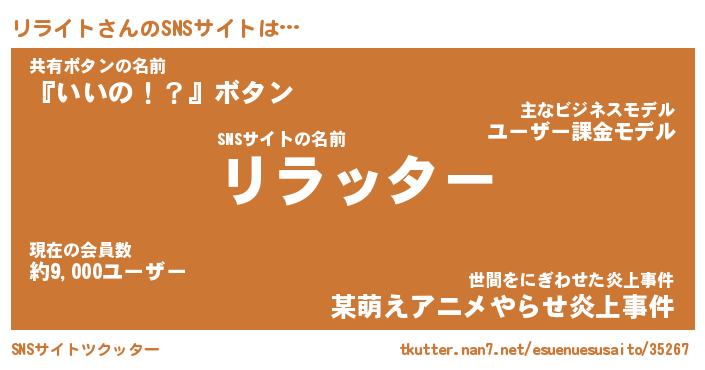 | 意味不明あだ名 | 『ペロリンリライト』『永久保存リライト』 |