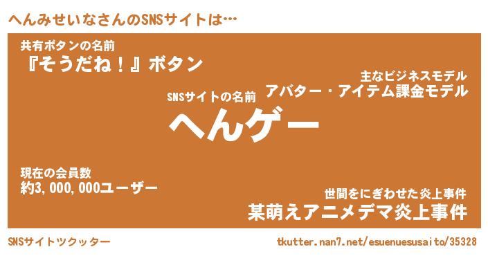 | 男性向けラノベタイトル風あだ名 | 『へんみせいなの憂鬱』 |