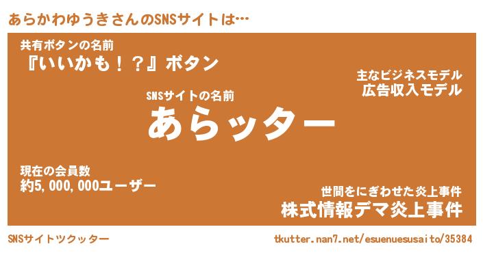 | 肩書あだ名 | 『あらかわゆうきCEO』 |