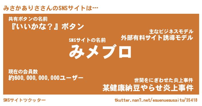 | 肩書あだ名 | 『みさかありさCEO』『みさかありさ大統領』 |