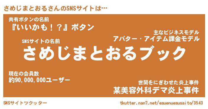 | 肩書あだ名 | 『さめじまとおる社長』 |