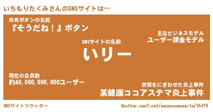 | 肩書あだ名 | 『いちもりたくみ店長』 |