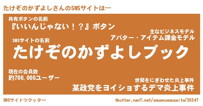 | 肩書あだ名 | 『たけぞのかずよし社長』 |