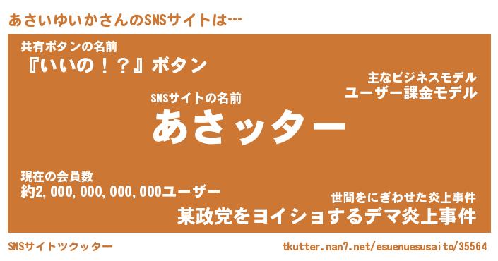 | 胡散臭い通販商品みたいなあだ名 | 『億万長者になれるブレスレット…その名も「あさいゆいか」』 |