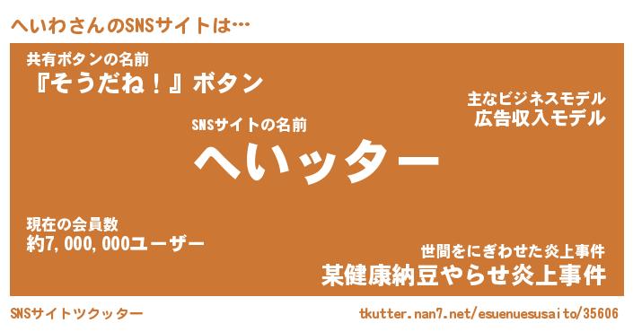 | ポケモン風あだ名 | 『ヘイチュウ』『ヘイワダネ』 |