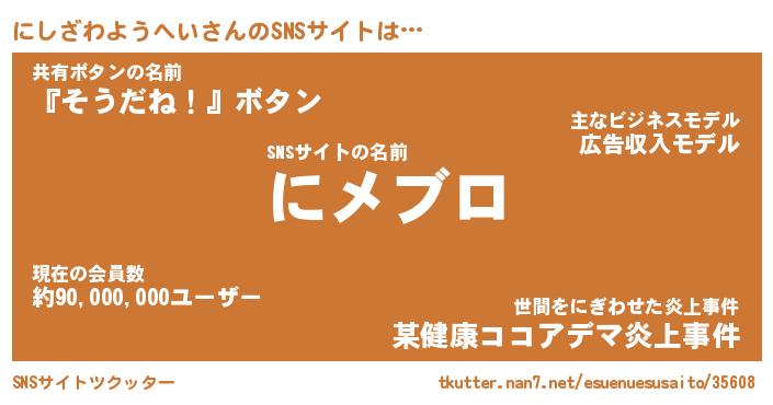 | ポケモン風あだ名 | 『ニシチュウ』『ニシザダネ』 |
