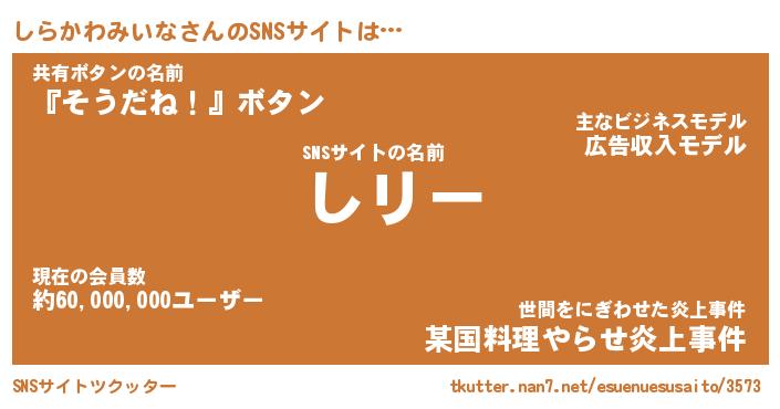 | 意味不明あだ名 | 『ペロリンしらかわみいな』 |