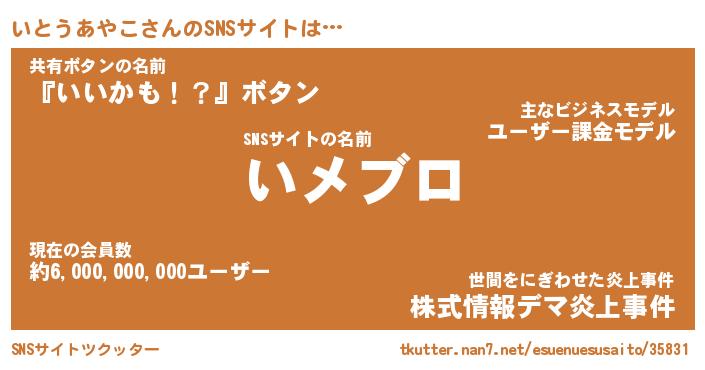 | 肩書あだ名 | 『いとうあやこ御曹司』 |
