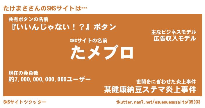 | 意味不明あだ名 | 『ペロリンたけまさ』『永久保存たけまさ』 |
