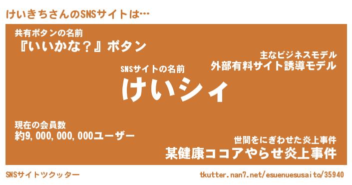 | 意味不明あだ名 | 『ペロリンけいきち』『永久保存けいきち』 |
