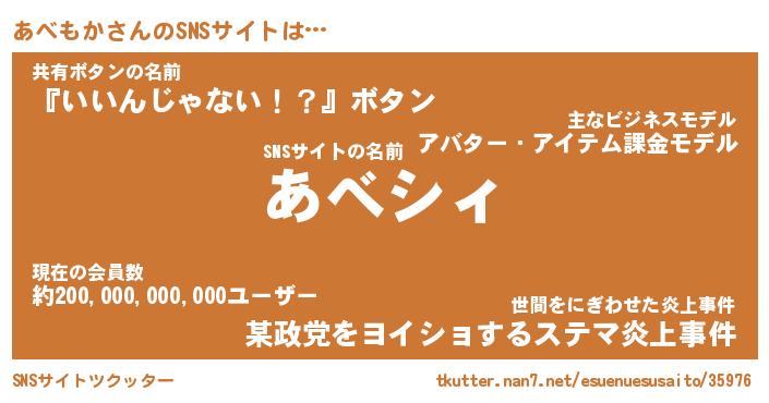 | 胡散臭い通販商品みたいなあだ名 | 『必ず成功するブレスレット…その名も「あべもか」』 |