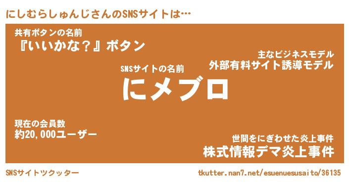 | ポケモン風あだ名 | 『ニシチュウ』『ニシムダネ』 |
