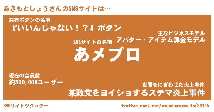 | ヘコむあだ名 | 『あきもー』『牛乳』『あき太郎』 |