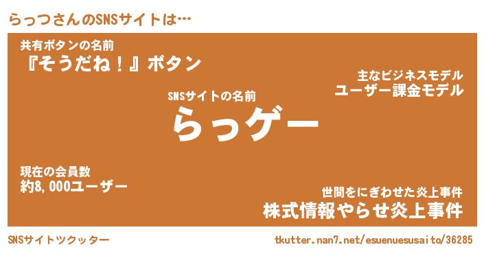 | 肩書あだ名 | 『らっつ店長』『らっつ国家主席』 |