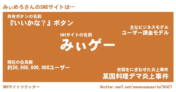 | 欧米人風あだ名 | 『マイケルみぃめろ』『ウサインみぃめろ』 |