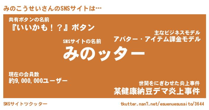| 胡散臭い通販商品みたいなあだ名 | 『億万長者になれるブレスレット…その名も「みのこうせい」』 |