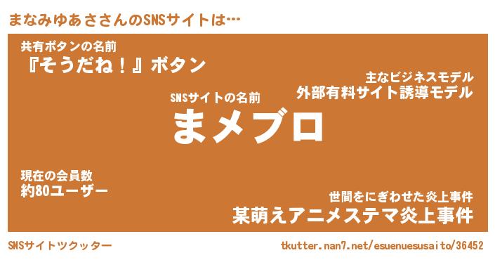 | 男性向けラノベタイトル風あだ名 | 『マナミユアサアートオンライン』 |