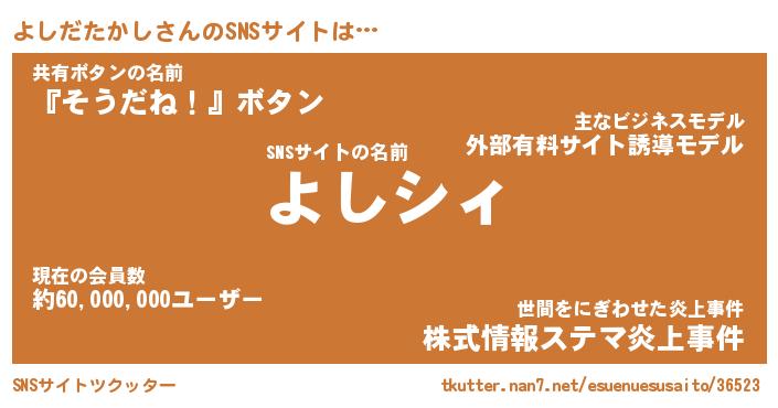 | ツイッター | よしだたかしさんのツイッターID『konnyaku_star』 |
