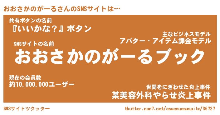 | 男性向けラノベタイトル風あだ名 | 『オオサカノガールアートオンライン』 |