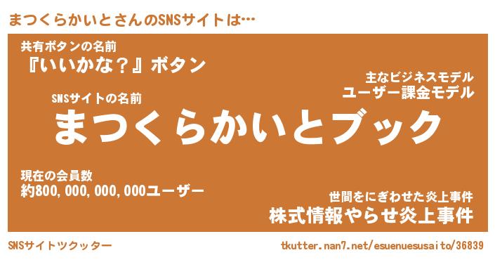 | 男性向けラノベタイトル風あだ名 | 『マツクラカイトアートオンライン』 |