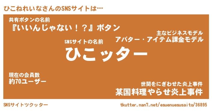 | 男性向けラノベタイトル風あだ名 | 『ヒコネレイナアートオンライン』 |