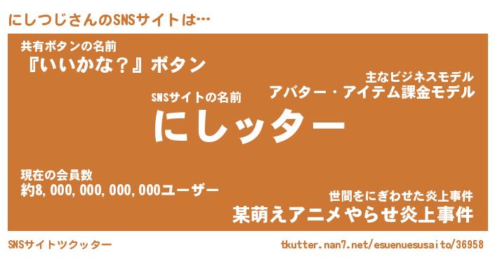 | 意味不明あだ名 | 『ペロリンにしつじ』『永久保存にしつじ』 |