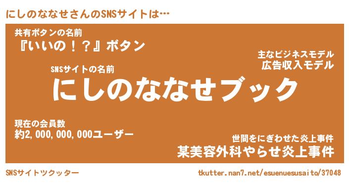 | 男性向けラノベタイトル風あだ名 | 『ニシノナナセアートオンライン』 |