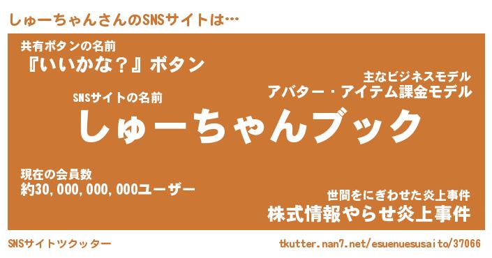 | 胡散臭い通販商品みたいなあだ名 | 『億万長者になれるブレスレット…その名も「しゅーちゃん」』 |