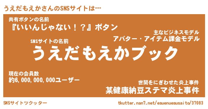 | ツイッター | うえだもえかさんのツイッターID『namakemono_idle』 |