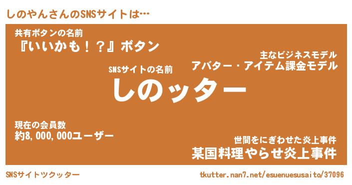 | 男性向けラノベタイトル風あだ名 | 『シノヤンアートオンライン』 |