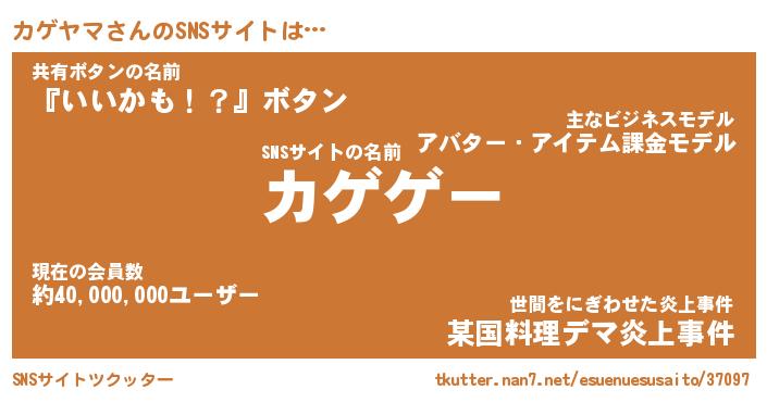 | ファンタジー風あだ名 | 『カゲフェル』『エターナルカゲヤマー』 |