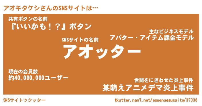 | 男性向けラノベタイトル風あだ名 | 『アオキタケシアートオンライン』 |