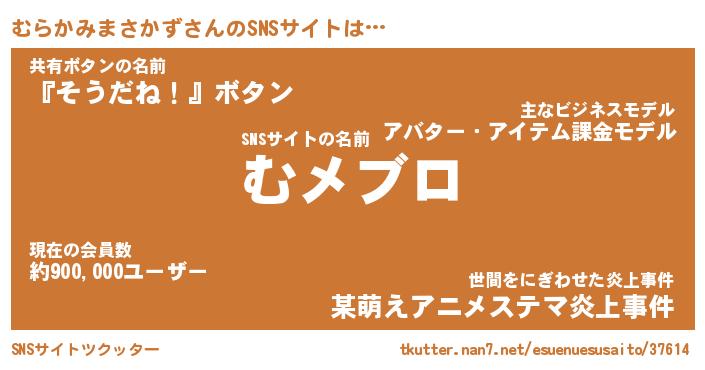 | ヘコむあだ名 | 『むらにゅー』『つくし』『むらっ子』 |