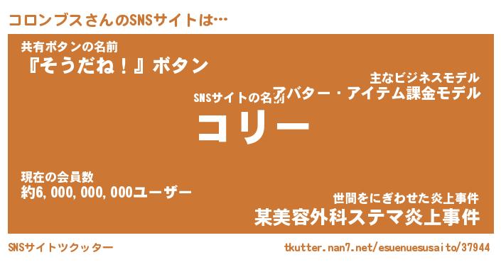 | 男性向けラノベタイトル風あだ名 | 『コロンブスの憂鬱』 |