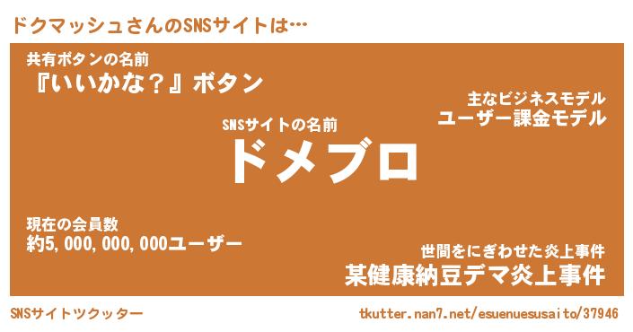 | 男性向けラノベタイトル風あだ名 | 『ドクマッシュアートオンライン』 |