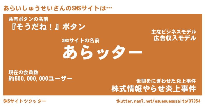 | 肩書あだ名 | 『あらいしゅうせいCEO』 |