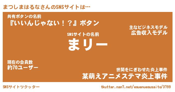 | 胡散臭い通販商品みたいなあだ名 | 『モテモテ間違いなし霊験あらたかなお札…その名も「まつしまはるな」』 |