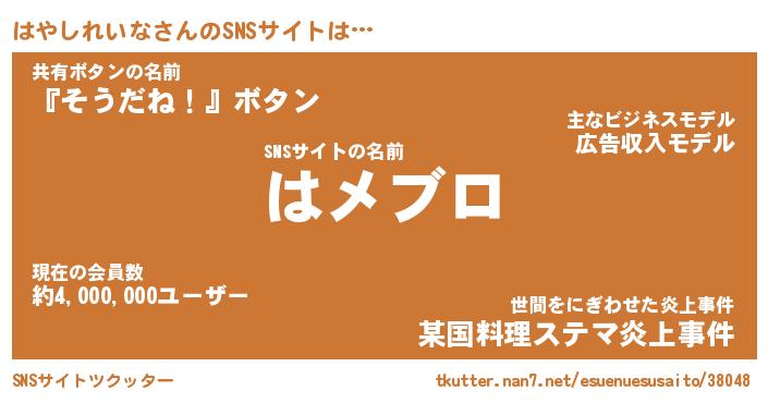 | 男性向けラノベタイトル風あだ名 | 『ハヤシレイナアートオンライン』 |