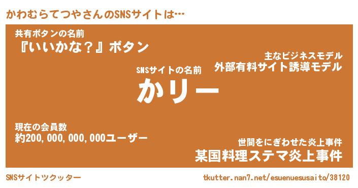 | 肩書あだ名 | 『かわむらてつや店長』 |