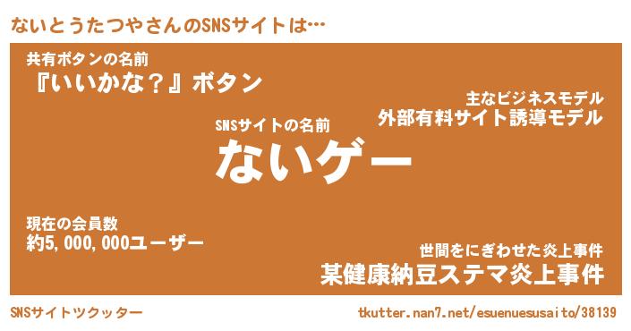 | 男性向けラノベタイトル風あだ名 | 『ないとうたつやの憂鬱』 |