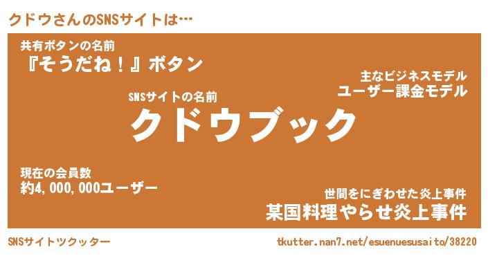 | ポケモン風あだ名 | 『クドチュウ』『クドウダネ』 |